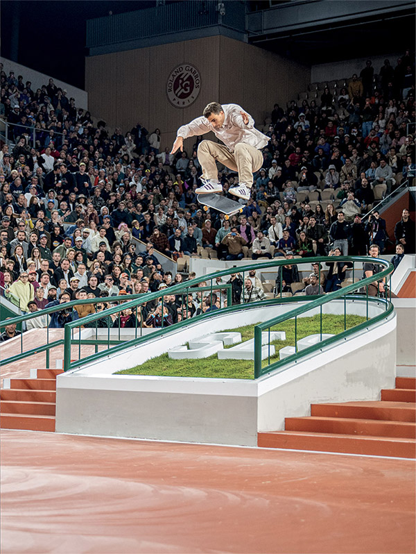 Pierre-Antoine Lalaude, lui, est loin de tout ça. Il a simplement fait des chouettes photos lors de l’étape française de la SLS cet automne, à Roland Garros. Et plutôt que de tout balancer sur Instagram ou de laisser mourir ça sur un disque dur, il a décidé d’en faire un bouquin, sans texte ni même de titre sur la couverture. Juste une cinquantaine de pages et 50 exemplaires imprimés, déjà disponibles chez Buzzz et Empire skateshops, ou en s’adressant directement à lui par DM. Qu’on aime ou qu’on déteste la Street League, c’est quand-même toujours plus agréable de voir des photos de skate imprimées en format A4 que sur un écran de téléphone. Surtout que, malgré tout le mal que je pense de la SLS, je dois admettre que le la scénographie du park façon court de tennis en terre battue était particulièrement réussie, et que PAL a eu le bon œil pour tirer profit de ce décor. On lui pardonne donc, et on le remercie d’ouvrir les nôtres, sur la réalité de la SLS.