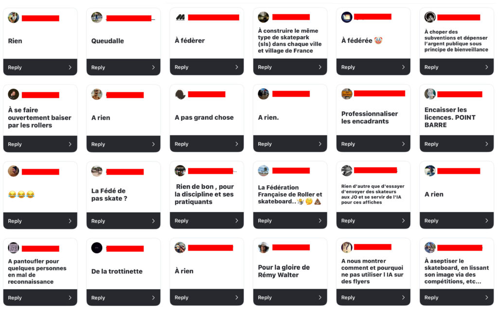 Pour le savoir, en bon journaliste, j’aurais sûrement dû aller poser la question directement au grand patron de la FFRS, après avoir galéré à ce qu’il réponde à mes mails insistants, qu’il m’ait googlé et qu’il ait finalement décidé de me bloquer… J’aurais pu aussi poser la question au patron de la Commission Nationale Skateboard, s’il existe (j’ai cherché 5 minutes sur le net et j’ai rapidement arrêté de peur de tomber sur un nom que je n’ai pas envie de lire…). Mais je n’ai pas pris le risque de recevoir une tirade pleine d’autocongratulation et d’arguments fallacieux sur ce qu’est soi-disant devenu le skateboard.